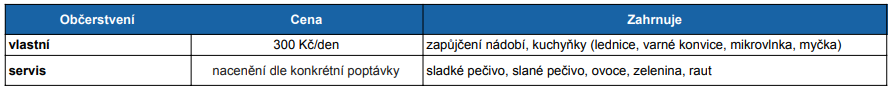 * V ceně je zahrnuto nádobí, příprava, doplňování a násedný úklid.